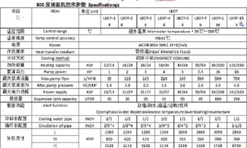 300度高温油温机高端配置,适中的价位,在温控设备领域赢得非常好的口碑,出厂前均进行严格的测试,以保证产品的技术领先,质量可靠.设计制造水平达到了国际先进水平,已可完全替代进口设备,完善的售后服务质量保证,充分解决每个客户的后顾之忧.设有多项安全保护设置,温度异常时,循环温度超过上限值警报并切断主电源,接触器卡死异常加热报警并指示,系统压力异常自动停止加热动作,BY-PASS泄压回路保护泵浦,液位开关检测油位防止缺油并报警指示,安全保护完善故障显示,维修保养无须专业人员.