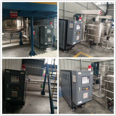 反应釜油控温系统,高温油温机利用循环泵,强制导热油进行液相循环,将热量传递给用一个或多种用热设备,经用热设备卸载后,重新通过循环泵,回到加热器,再吸收热量,传递给用热设备,如此周而复始,实现热量的连续传递,使被加热物体温度升高,达到加热的工艺要求。